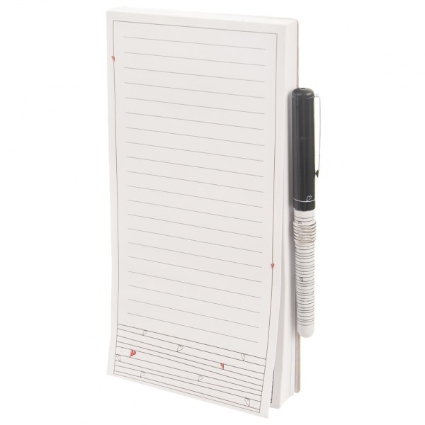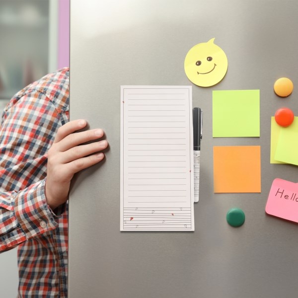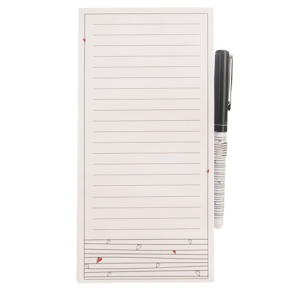 Praktický poznámkový blok se 120 listy lze používat jako běžný blok, kam si poznamenáte nákupní seznam, vzkazy pro ostatní členy domácnosti, soupis pomůcek do školy nebo věci potřebné na výlet pro vaše děti. A vaše nápady, které nechcete zapomenout, budou mít své místo.Ze zadní strany je opatřen magnetem, díky němuž můžete mít blok v kuchyni neustále po ruce, připevněný na dveřích ledničky. Je lepený v horní části, takže jednotlivé listy snadno utrhnete.