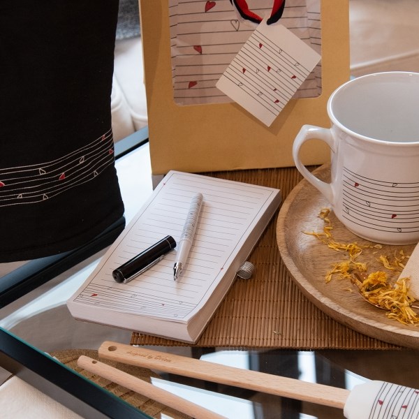 Jeho součástí je i propiska, obojí je navíc zdobeno jemným dekorem srdíček, navržených v designérské dílně Orion.