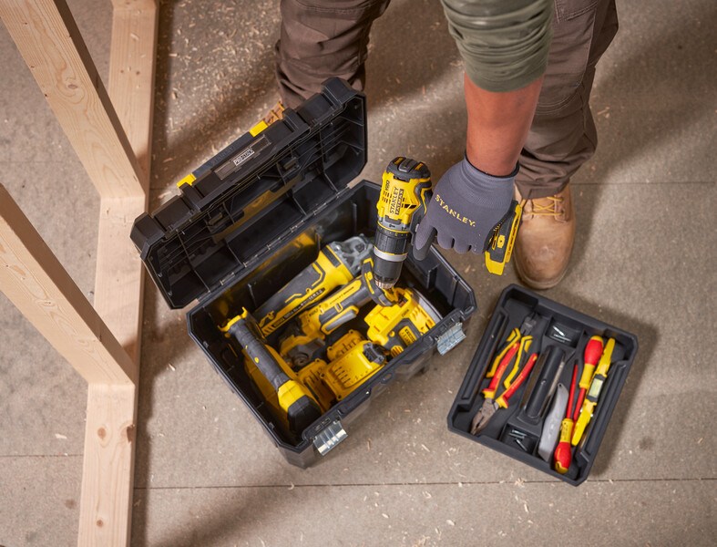 Box na nářadí TSTAK VI FatMax. Komfortní, odolný a silný, integrovaný držák, uzamykatelné víko, snadno se připojí k ostatním modulům pomocí bočních příchytek