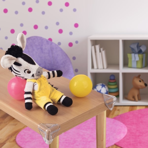 Tyto čtyři průhledné plastové chrániče ochrání Vás i vaše dítě před poraněním o ostré rohy stolu či jiného nábytku. Navíc můžou posloužit i jako ochrana nábytku před poškozením. Chrániče jsou transparentní.Jsou opatřeny oboustrannou lepicí páskou, tzn. 12 kusy trojúhelníkových transparentních samolepek. Snadno je nalepíte na roh nábytku a umístíte chrániče. Děti jsou totiž neustále v pohybu a jejich bezpečnost je pro každého rodiče prioritou.