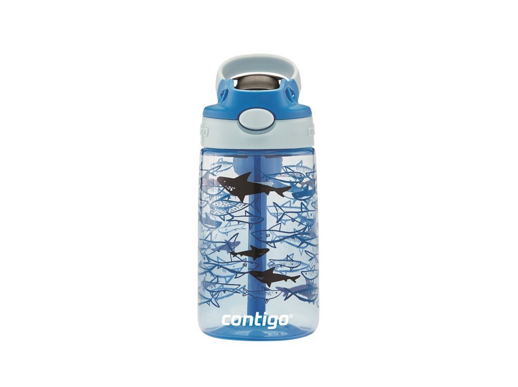 Dětská láhev Contigo Easy Clean AUTOSPOUT 420 ml Blue Sharks, umožňuje stisknutím tlačítka otevřít vyskakovací brčko pro pití jednou rukou. Dospělí ocení ventil proti rozlití, který chrání autosedačky a stoly, i když děti drží láhev vzhůru nohama.Základní vlastnosti
