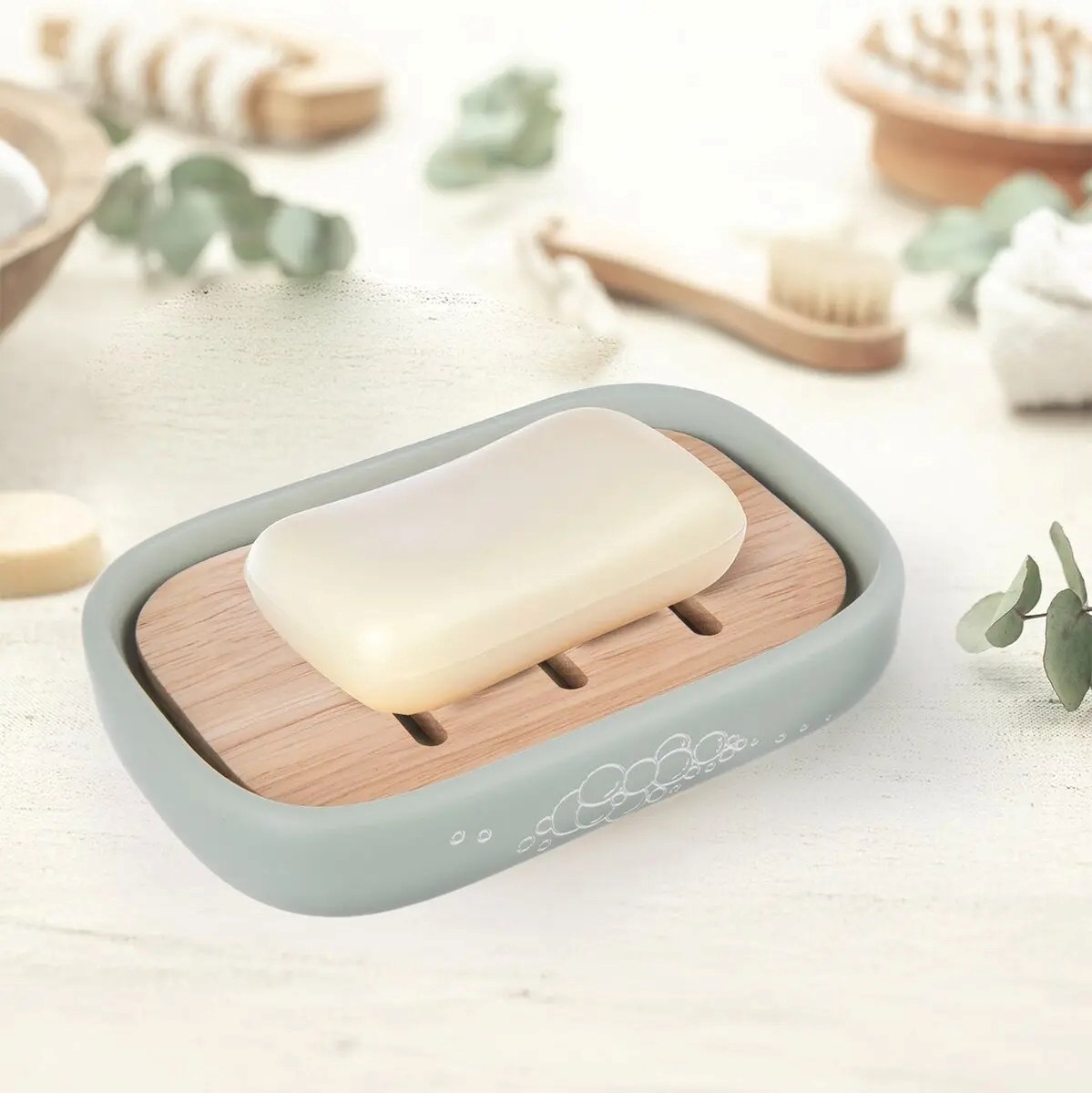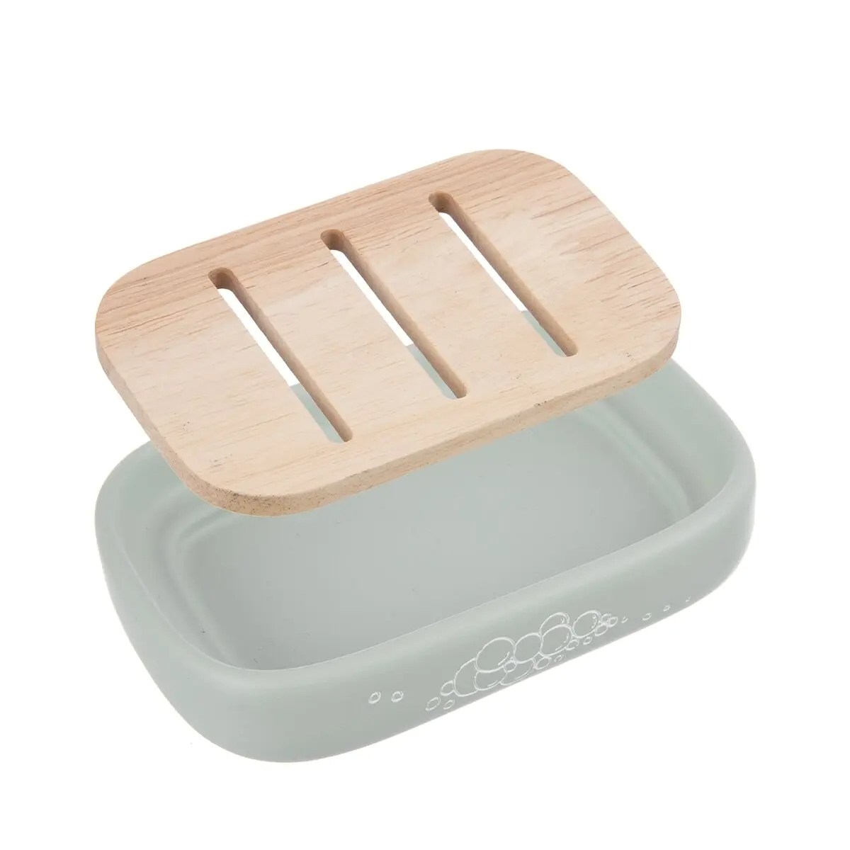 Pokud často používáte tuhé mýdlo nebo šampuk, pak se vám bude hodit držák na mýdlo v příjemné zelené barvě. I pokud máte v oblibě ručně dělaná dekorační mýdla nebo naopak žlučové mýdlo, které pomůže s odstraněním skvrn, bude tento pomocník ideálním místem, kam jej odložit.Tento je v provedení polyresin s nástřikem a má vyjímatelnou část z gumovníkového dřeva, takže mýdlo nebude ležet ve vodě a přebytečná voda steče dolů. Tak lze čas od času také mýdlenku snadno vyčistit.