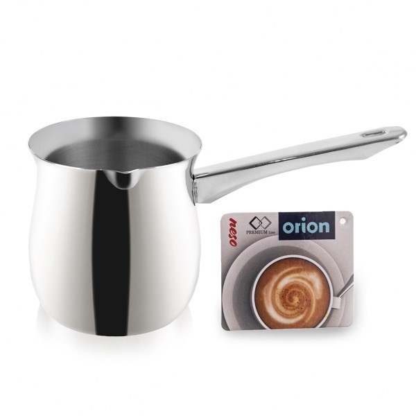 Nerezová džezva NESO o objemu 300 ml se hodí k přípravě pravé turecké kávy. Horní okraj nádoby je rozšířen do tzv. límce, který zabraňuje přetékání kávy při jejím vzkypění.Menší hubička slouží ke snadnějšímu nalévání nápoje. Džezvu lze použít na elektrickém a plynovém sporáku nebo na sklokeramické desce.