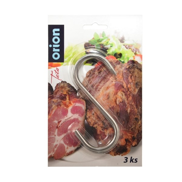 Tento nerezový háček má výšku 11,5 cm a šířku 8,4 cm. Hodí se například na zavěšení masa do udírny. Na jedné straně má ostrý hrot, který snadno projde i větším kusem masa. Sada obsahuje tři kusy.Vlastnosti produktu