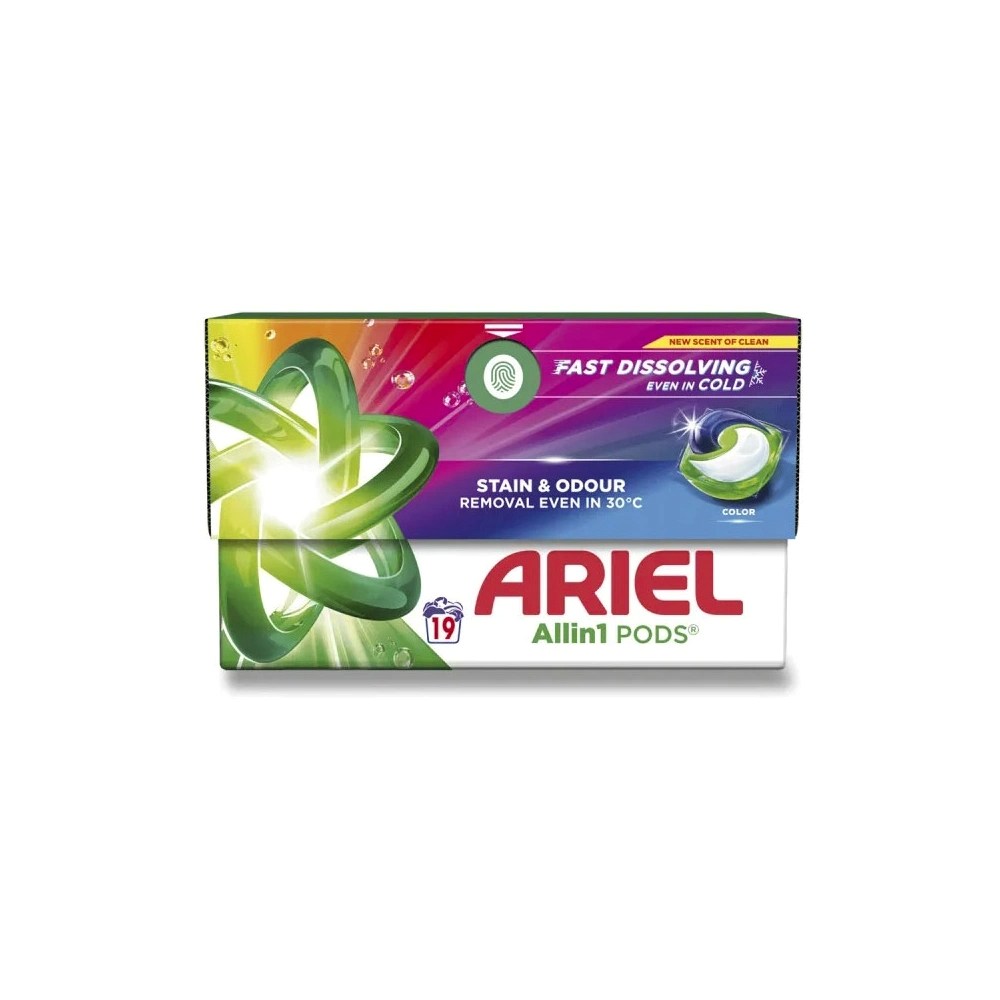 Ariel All in 1 Pods Color jsou praktické gelové kapsle určené pro efektivní praní barevného prádla. Díky inovativní technologii s několika oddělenými komorami kombinují více účinků v jednom kroku – odstraňují skvrny, chrání a rozjasňují barvy, a zanechávají prádlo svěže voňavé. Kapsle se zcela rozpustí i při nízkých teplotách a usnadňují dávkování bez rizika plýtvání pracím prostředkem.Vlastnosti: