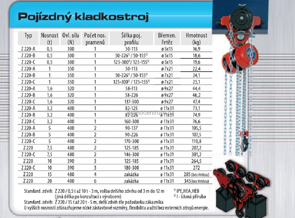 Pojízdný kladkostroj Z220-B / 3,2t / 5mJako klasický ručně ovládaný jeřáb ke zvedání a přemisťování břemen v prostoru jeřábové dráhy