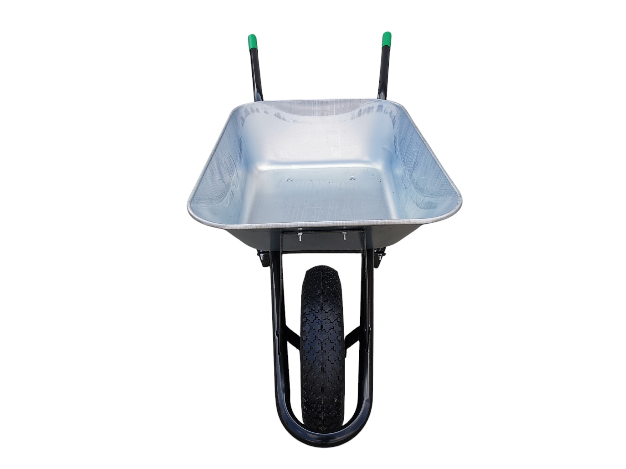 Klasické stavební/zahradní kolečko s pozinkovanou taženou korbou o objemu 80 l a kovovým rámem. Nafukovací kolo je vhodné do různých terénů a snadné na manipulaci.