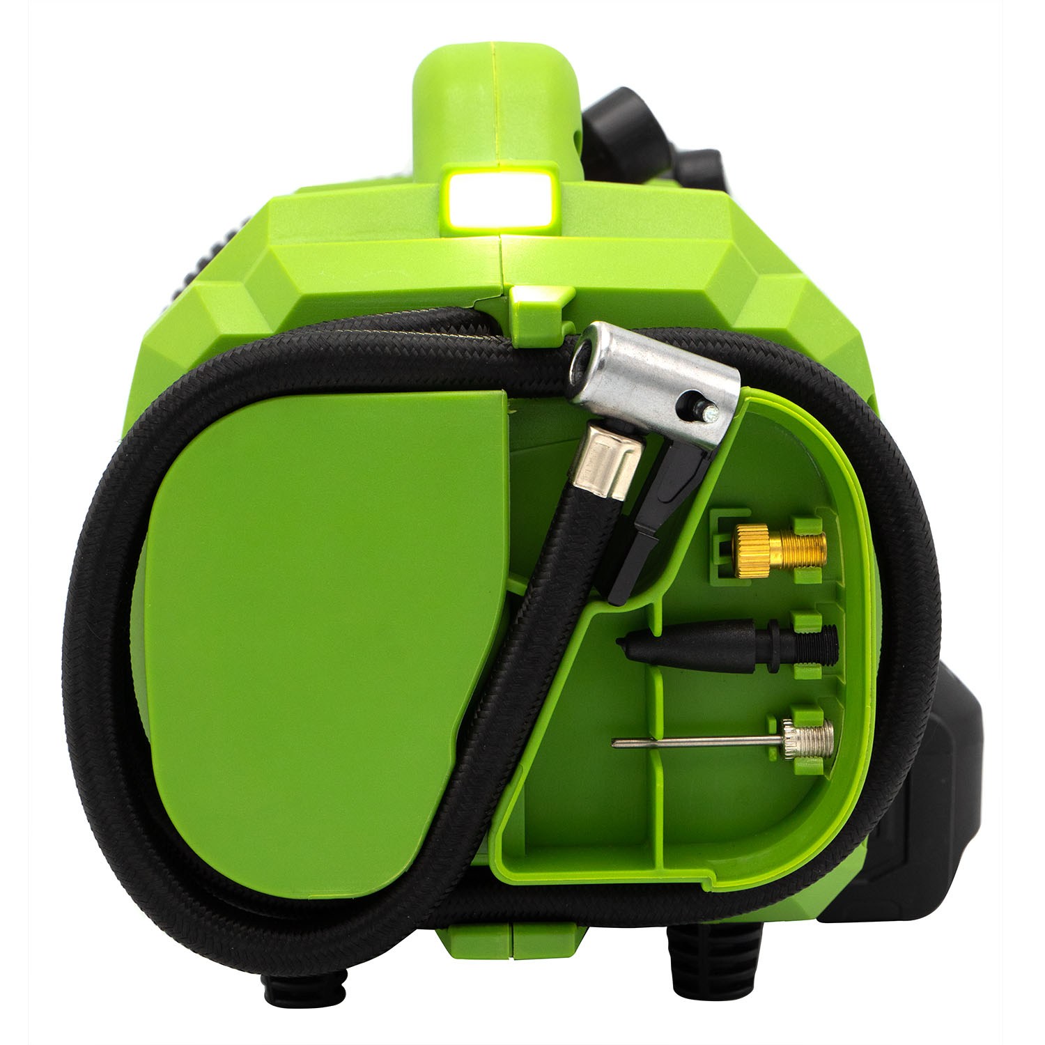 Vysoký maximální tlak: S tlakem až 10 barů je schopen zajistit dostatečný tlak pro nafukování pneumatik (kol, aut), míčů a dalších nafukovacích předmětů.