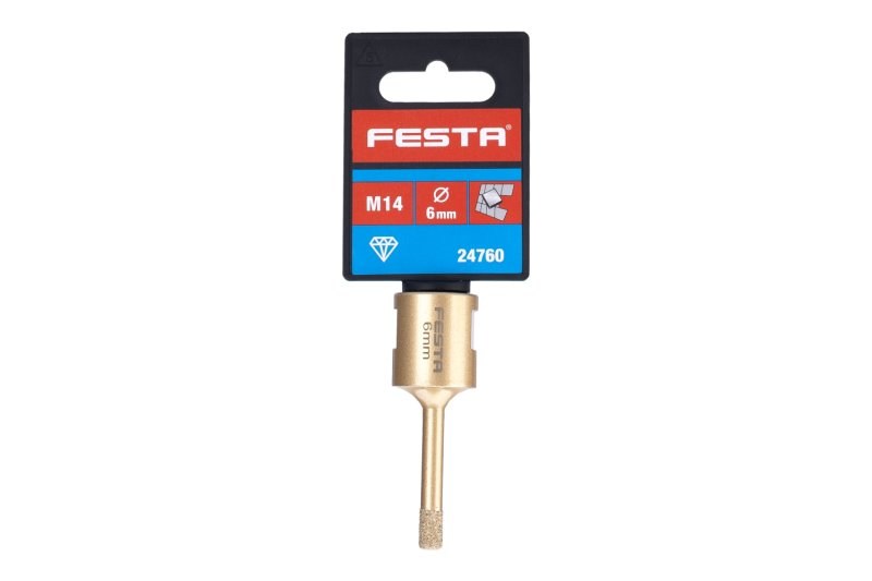 profesionální vykružovací diamantová korunka se závitem M14 - pro úhlové brusky pro "suché" přesné a rychlé vrtání do kamene, dlažby, obkladů, žuly, mramoru a jiných extrémně tvrdých materiálů nejen ve stavebnictví výška vrstvy diamantu 10 mm, dlouhá životnost bez nutnosti použít jakýkoli pomocný nástroj vykroužíte přesný otvor na požadovaném místě doporučený pracovní postup - našroubujte korunku přímo na závit hlavy úhlové brusky, pevně dotáhněte, vykružovat požadovaný otvor začněte pod úhlem 45 °, korunka a rychlost brusky okamžitě zajistí uchycení v požadovaném místě, pomalu při rovnoměrně vytvořeném tlaku narovnejte směr vykružování do svislé polohy, menší průměry 6 - 14 cm je u vrtání do tvrdých dlažeb, mezi jednotlivými vrty, ZCHLADIT - stačí ponořit do sklenice s vodou nebo nechat v otáčkách ochladit vzduchem! Instruktážní video