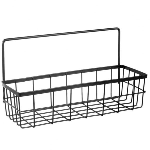 Stylový kovový závěsný košík na kořenky z kolekce RADKA v černé barvě, který lze po zavěšení na tyč RADKA využít k uložení kořenek, dóz s dochucovadly, květináčů s bylinkami nebo sešitů s recepty.Vznikne tak praktický odkládací prostor a na pracovní ploše budete mít dostatek místa.