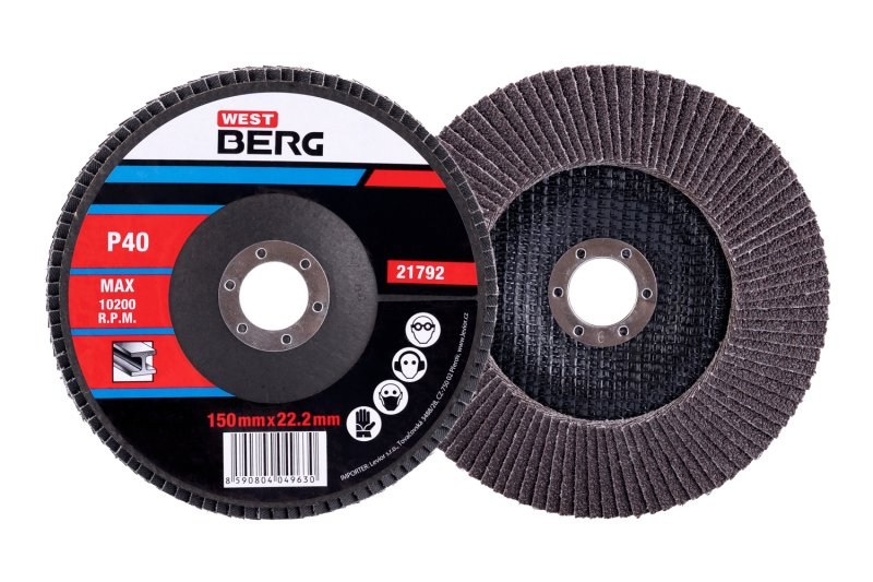 Lamelový kotouč, zrnitost: 60; druh zrna: oxid hlinitý; pojivo: umělá pryskyřice; podkladový materiál: pružná tkanina - 100% bavlna (240-260g/m2); provedení: vyhnutý; otvor : O 22,2mm, max. pracovní rychlost : 80m/s, max. přípustné otáčky: 13300 1/min, použití : broušení, obrušování, odrezování, odstraňování nátěrů, ...., rozměry : uvedeny v názvu výrobku.