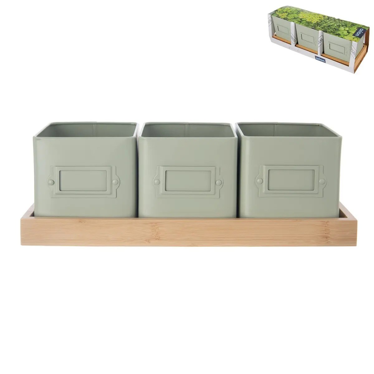 Květináč kov bylinky GREENISH 11,5x11,5 cm 3 ks+ bambus. podtácek