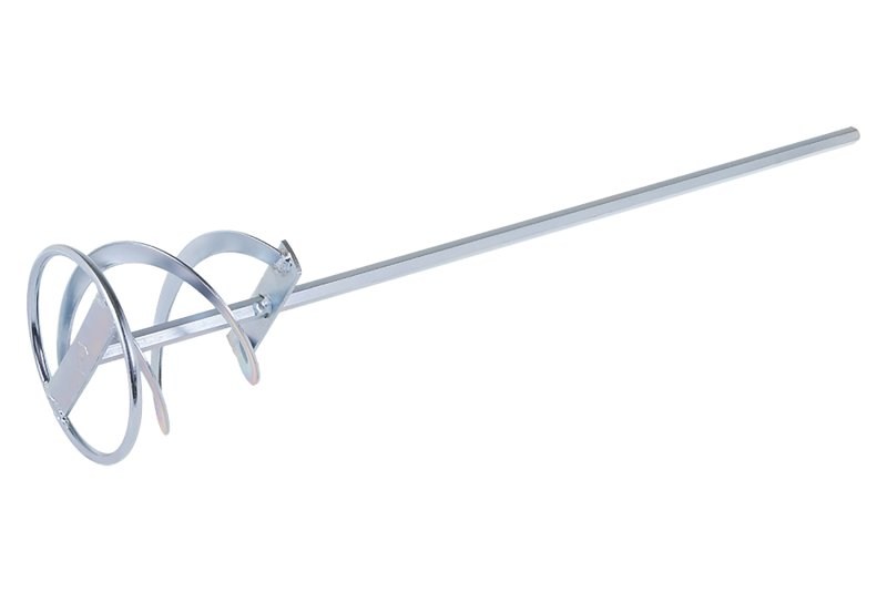 Míchadlo s kruhem ( metla ), pozinkované, rozměr : O 100 x 500 mm - šestihran, použití : pro důkladné rozmíchání lepidel na obklady, spárovaných hmot, lepících malt, hotových omítek, mazaniny, stěrkovacích hmot, vyrovnávacích hmot.