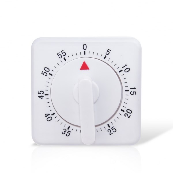 Kuchyňská minutka. Pomůcka, která zajistí včasné vytažení připravovaných dobrot ven z trouby, ať už čokoládového suflé, roastbeefu nebo vařící se rýže a vajíček.Díky svému hranatému tvaru, elegantní bílé barvě a kvalitnímu materiálu zapadne do interiéru každé kuchyně. Červená šipka upozorní na aktuální nastavený čas. Maximální nastavitelná doba je 60 minut.