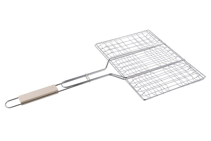 Grilovací mřížka otočná, použití : je ideální na grilování masa, zeleniny a jiných grilovaných specialit, grilovací mřížka díky konstrukci dvou mřížek mezi které vložime grilovaný pokrm - uzavřeme, zajistime pojistkou a umístíme na gril - rošt a snadno najednou i více porcí otáčíme a tím snadno docílíme správné urovně tepelné přípravy pokrmu.