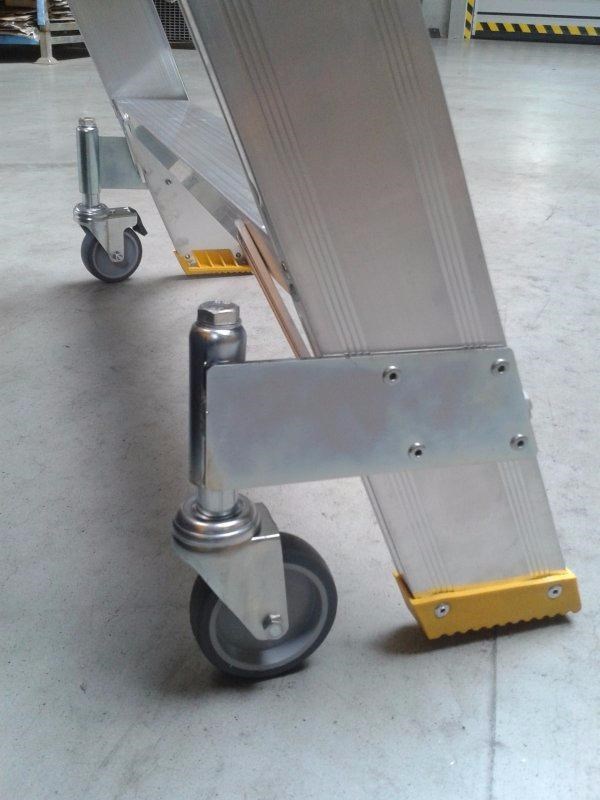 Profesionální můstek jednostranný PREMIUM, počet nášlapů 1x3 až 1x8, rozměry plošinky 560 x 778 mm, max. výška plošinka 0,62 až 1,68 m a šířka 689 až 1500 mm (u typů se stabilizátorem vč. stabilizátoru). Plošinka je vyrobena z protiskluzového hliníkového profilu graepel, můstek tak zvládne nejtěžší provozy a povětrnostní podmínky. Jako doplněk odpružená kolečka.Základní parametry