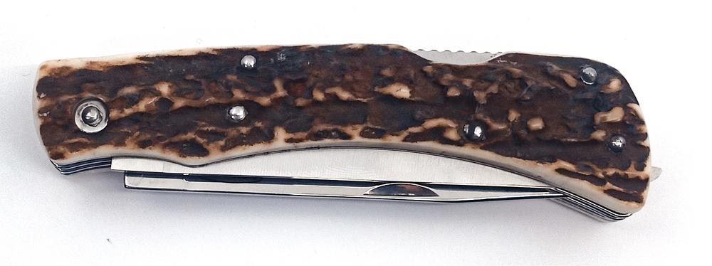 Pro výrobu střenky loveckého nože HUBERT jsme použili pravé jelení paroží. Čepel je vyrobena z kvalitní nerezové oceli 440A o tvrdosti 54-57 HRc. Čepel loveckého nože HUBERT je jištěna bezpečnostní pojistkou backlock. Lovecký nůž HUBERT je vybaven také velkou praktickou prodlouženou pilkou s otvíráním z čela nože - bez nehetníku, bez pojistky. Dále je lovecký nůž HUBERT vybaven páráčkem. Lovecký nůž HUBERT je dodáván včetně kvalitního koženého pouzdra s logem Mikov.