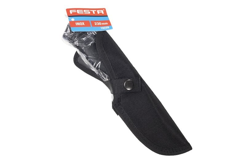 Nerezový lovecký nůž, teflonová povrchová úprava čepele, celková délka 23 cm, ergonomická pogumovaná rukojeť. Nůž není zavírací. Nylonové pouzdro s připnutím na opasek.Základní parametry