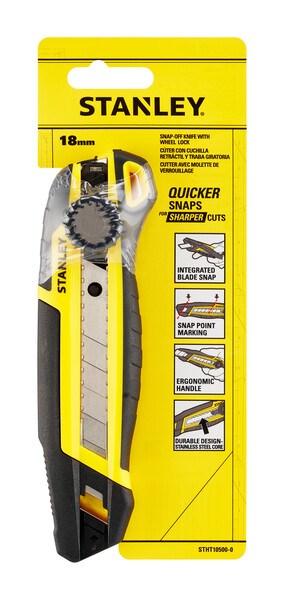 • Vysouvací lámací nůž s aretačním kolečkem FatMax Stanley STHT10500-0• Nůž je vybaven kolečkem umožňujícím rychlé a intuitivní nastavování hloubky čepele