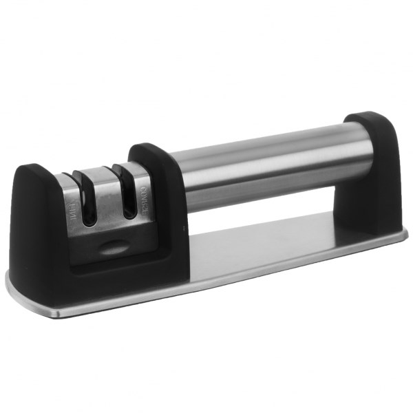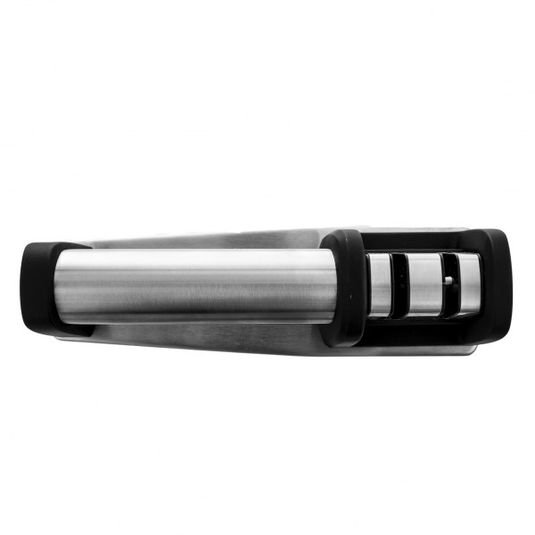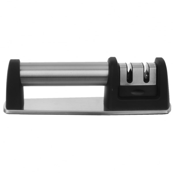 Při častém používání ocelových nožů nebo kovových nožů s titanovým povrchem dochází postupně k jejich tupení, zvlášť pokud jsou uloženy volně v zásuvce a ne ve stojanu na nože nebo na liště.Brousek s kovovým a keramickým kotoučem je určen pro broušení tupých kovových nožů s hladkým, nikoliv zoubkovaným ostřím, a pro jejich následné dobrušování. Praktická rukojeť usnadní broušení.