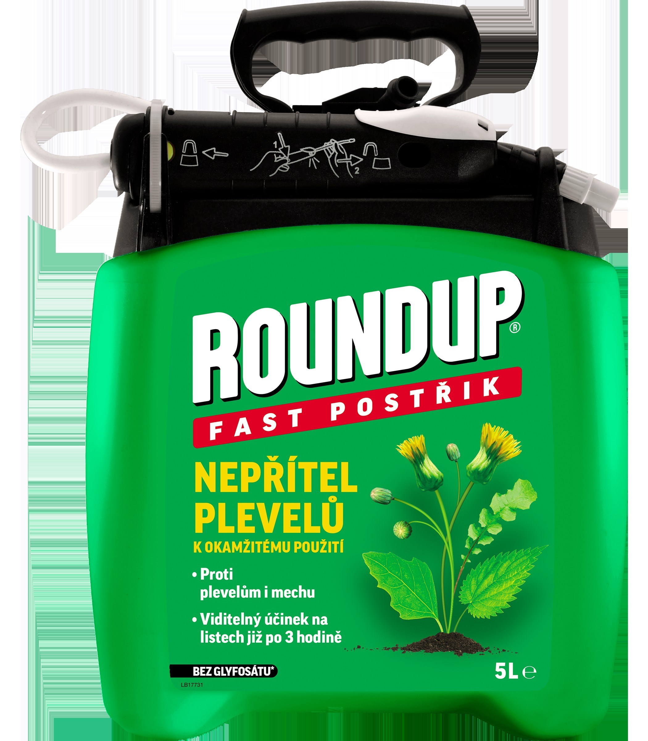 Popis zboží:ROUNDUP® FAST Postřik je herbicidní přípravek určený k likvidaci nežádoucích širokolistých a trávovitých plevelů: