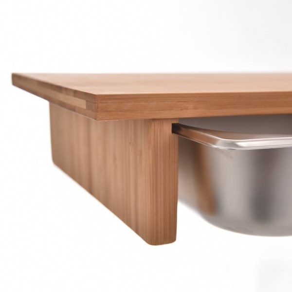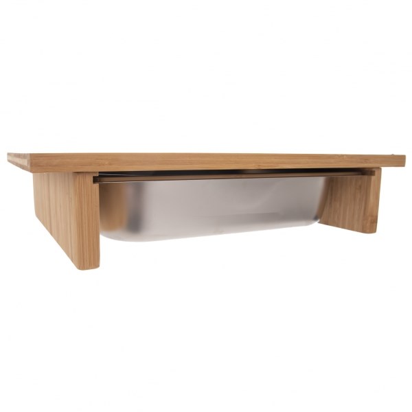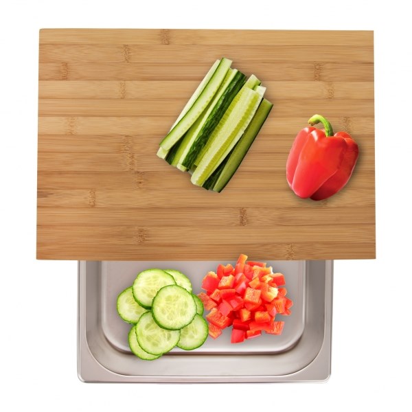 Usnadněte si práci v kuchyni s tímto krájecím prkénkem z bambusového dřeva a jeho nerezovým zásobníkem. Na prkénku nakrájíte potřebné suroviny, které následně shrnete do zásobníku pod ním. Oceníte jej při krájení zeleniny a masa na pečení nebo grilování, které rovnou shrnete do nádoby a můžete je marinovat.Vysouvací nádoba může posloužit i jako odkládací místo pro slupky a odřezky, což urychlí a zjednoduší úklid po vaření. Zásobník lze navíc mýt v myčce.
