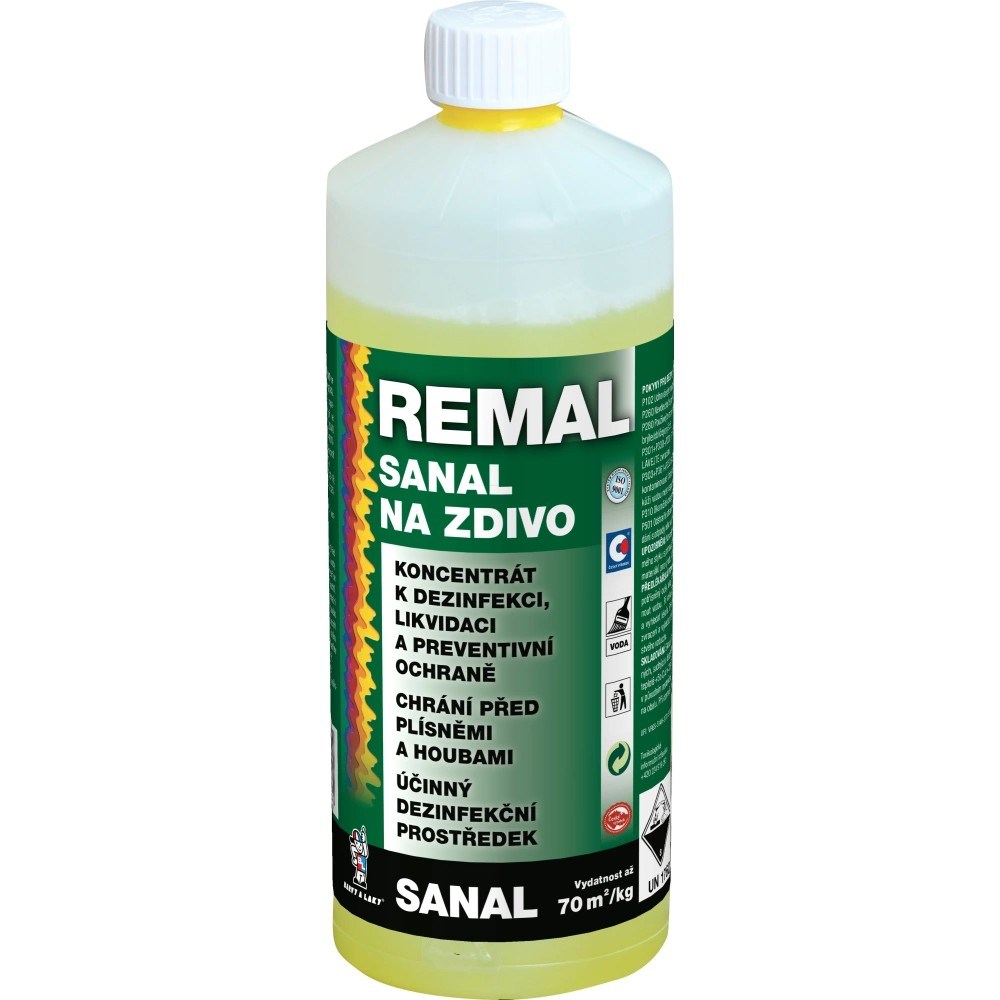 PopisRemal Sanal na zdivo k sanaci a preventivní ochraně zdiva, omítek, kamene, betonu a jiných stavebních materiálů při napadení plísněmi a houbami. Vodný roztok kvarterní amoniové soli s přísadou značkovacího barviva a speciálního aditiva. Výrobek neobsahuje organická rozpouštědla ani těžké kovy.
