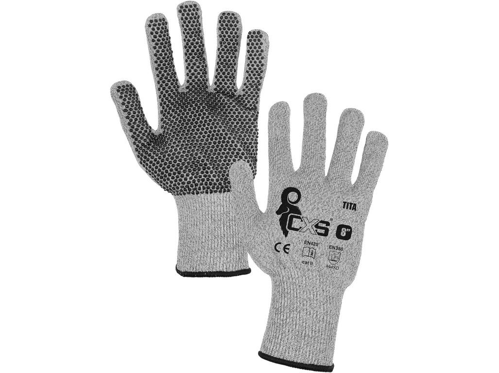 Pletené bezešvé rukavice s odolností proti řezu 4, PVC terčíky v dlani a prstech pro lepší úchop a manipulaci. Doporučené aplikace: logistika, skladování, manipulace s tabulovým sklem a předměty s ostrými hranami, manipulace s tabulovým plechem, řezání suchých, lakovaných nebo galvanizovaných dílů, údržba.Parametry zboží