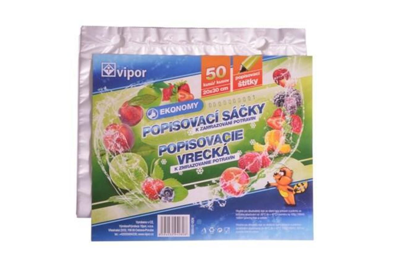 Sáček HDPE zamrazovací 20x30cm/15my, 50ks balenéBalené sáčky s etiketou vhodné pro další prodej. Jsou vhodné k balení potravin, ovoce, zeleniny, masných výrobků. Jsou odolné proti roztržení a vodě. Jsou opatřeny štítkem pro popis před zamražením .