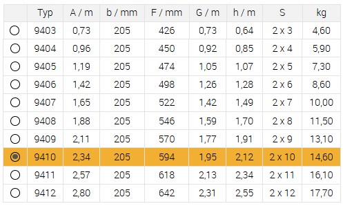 Počet příček: 2 x 10