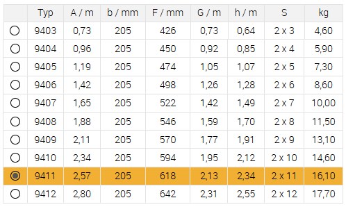 Počet příček:2 x 11