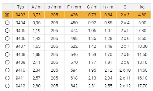 Maximální rozestup: 0,73 m