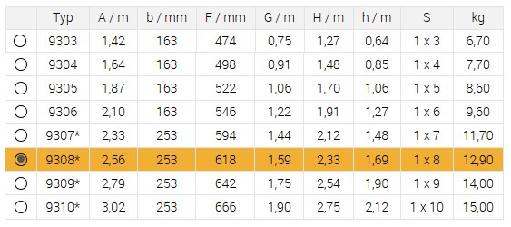 * - standardně s namontovanými kolečky, rozměr "b" je včetně koleček