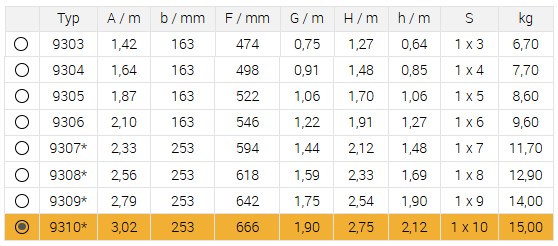 * - standardně s namontovanými kolečky, rozměr "b" je včetně koleček.