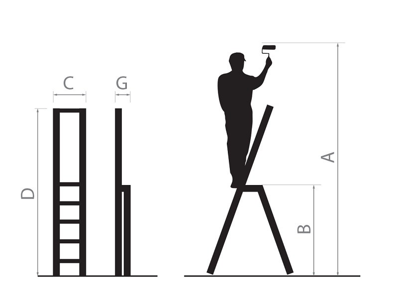Vhodné pro pohodlnou práci doma nebo v kanceláři. Je určen pro práci v nízkých výškách a protáhlé zábradlí zabraňuje možnému pádu ze žebříku.Široké schůdky s protiskluzovou plastovou vrstvou.