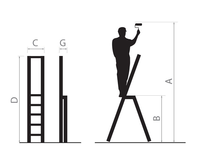 (G) Tloušťka složeného žebříku: 5 cm