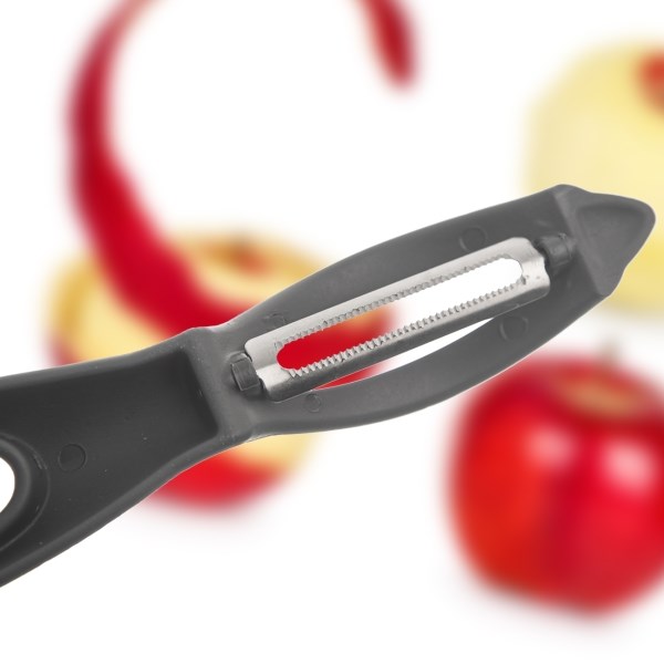 Rovná plastová škrabka s nerezovým ostřím, vhodná pro praváky i leváky, usnadní škrabání ovoce i zeleniny do salátů, na svačiny, při přípravě teplých jídel, ale i při škrabání brambor určených k vaření přílohy.Má také plastový hrot na odstraňování hlubších nečistot. Možnost zavěšení.