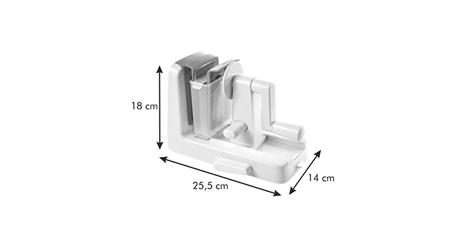 Vynikající pro přípravu nudliček, špaget a spirálových plátků z brambor, cuket, okurek, mrkve, červené řepy, jablek, hrušek apod. Tři čepele z prvotřídní nerezavějící oceli, snadné upevnění na plochu účinnou přísavkou. 3 roky záruka.Prohlédněte si video k produktu: