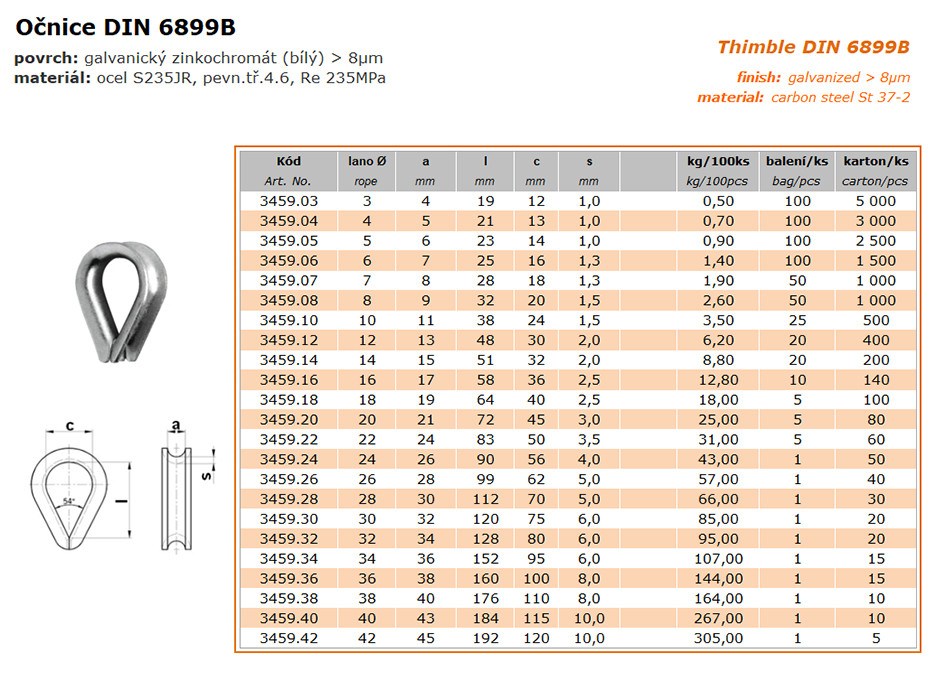 Srdcovka pro lanka 3mm Výprodej Bazar Srdcovka pro lanka 3mm Kód: 3693210 P/N: 51250 Záruka: 24 Měsíc(ů) Výrobce: FESTA Měrná jednotka: ks Dostupnost: 10 a více Cena bez DPH: 0,10 Kč Cena s DPH: 0,12 Kč Rozpis cen Recyklační poplatek: 0,00 Kč Autorský polatek: 0,00 Kč Množství ks Do košíku Popis Podrobnosti Očnice DIN 6899Bpovrch: galvanický zinkochromát (bílý) > 8µm materiál: ocel S235JR, pevn.tř.4.6, Re 235MPa