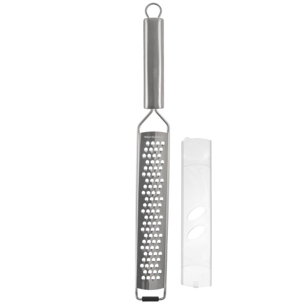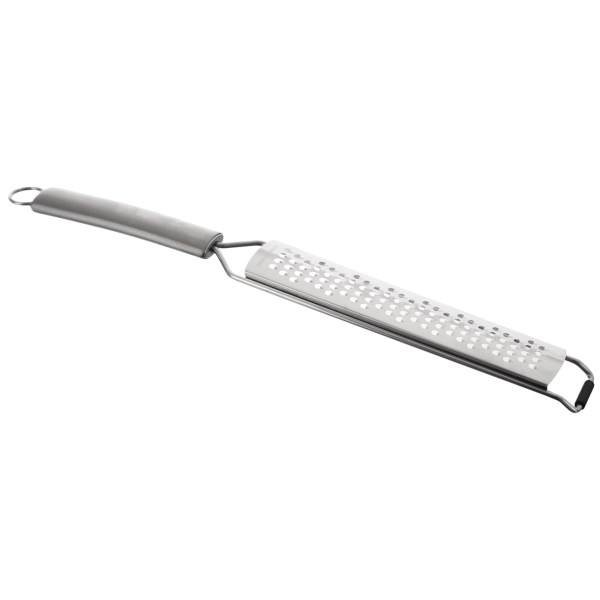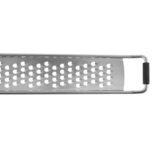 Nerezové struhadlo s otvory střední hrubosti se stane praktickým pomocníkem do každé kuchyně. Má dostatečně širokou, zaoblenou rukojeť, která se pohodlně drží. Spodní část je opatřena opěrkou, bránící klouzání struhadla.Jednoruční ploché struhadlo je vhodné ke strouhání ovoce, kořenové zeleniny, čokolády, dýně, okurek i brambor na bramborové knedlíky nebo křupavé bramboráky.