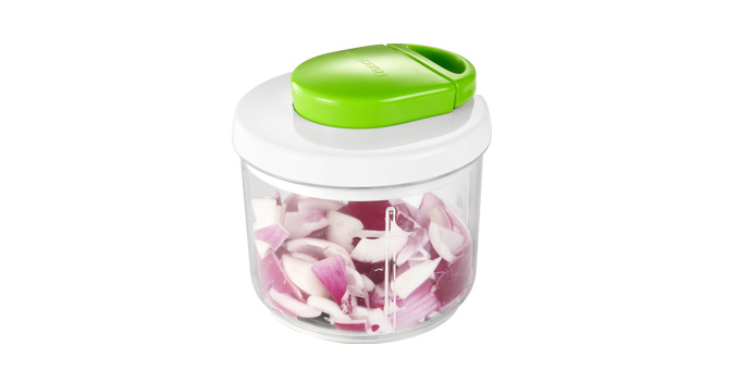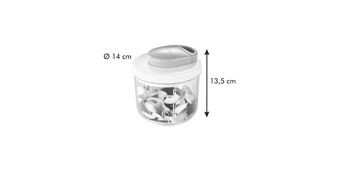 Snadno a rychle naseká potraviny na požadovanou hrubost, vynikající pro cibuli, kořenovou zeleninu, rajčata, bylinky, jablka, hrušky, ořechy, piškoty, přípravu ovocných a zeleninových salátů, pesta apod. Vyrobeno z odolného plastu s protiskluzovou úpravou, čepel z prvotřídní nerezavějící oceli. Návod k použití s recepty. 3 roky záruka.Prohlédněte si video k produktu: