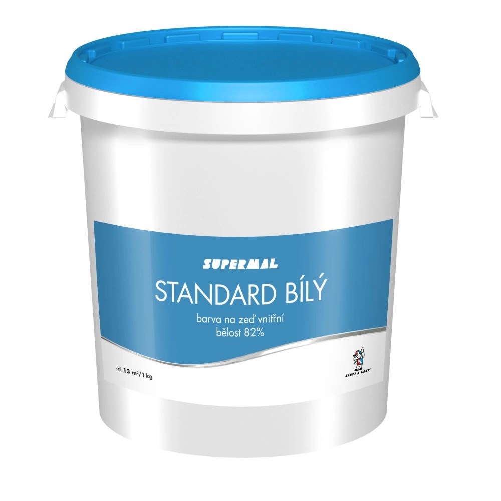 PopisSupermal Standard je vodou ředitelná interiérová malířská barva vhodná pro bílé nátěry stěn a stropů. Lze ji použít na omítky, beton, sádrokarton, dřevotřísku, cetris desky i sanační omítky. Vytváří matný, vysoce bílý a rovnoměrný povrch s dobrou krycí schopností.