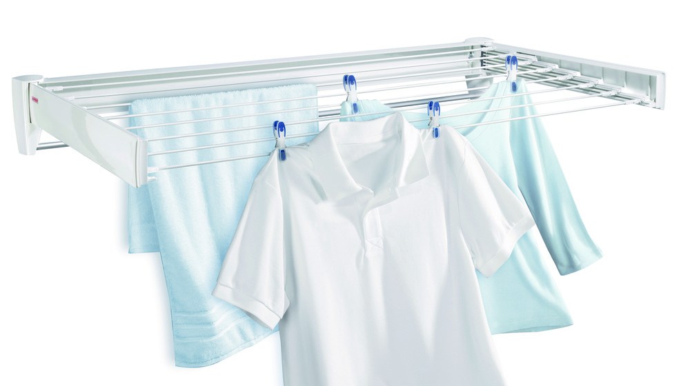 Praktický sušák na prádlo Telegant 81 Plus značky Leifheit.- skládací nástěnný sušák na prádlo šetřící místo