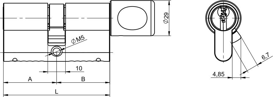 Vložka FAB 3.02/BDKvNs 50+35K 5klíčů Nikl matný knoflík na 35mm /průměr 30mm/