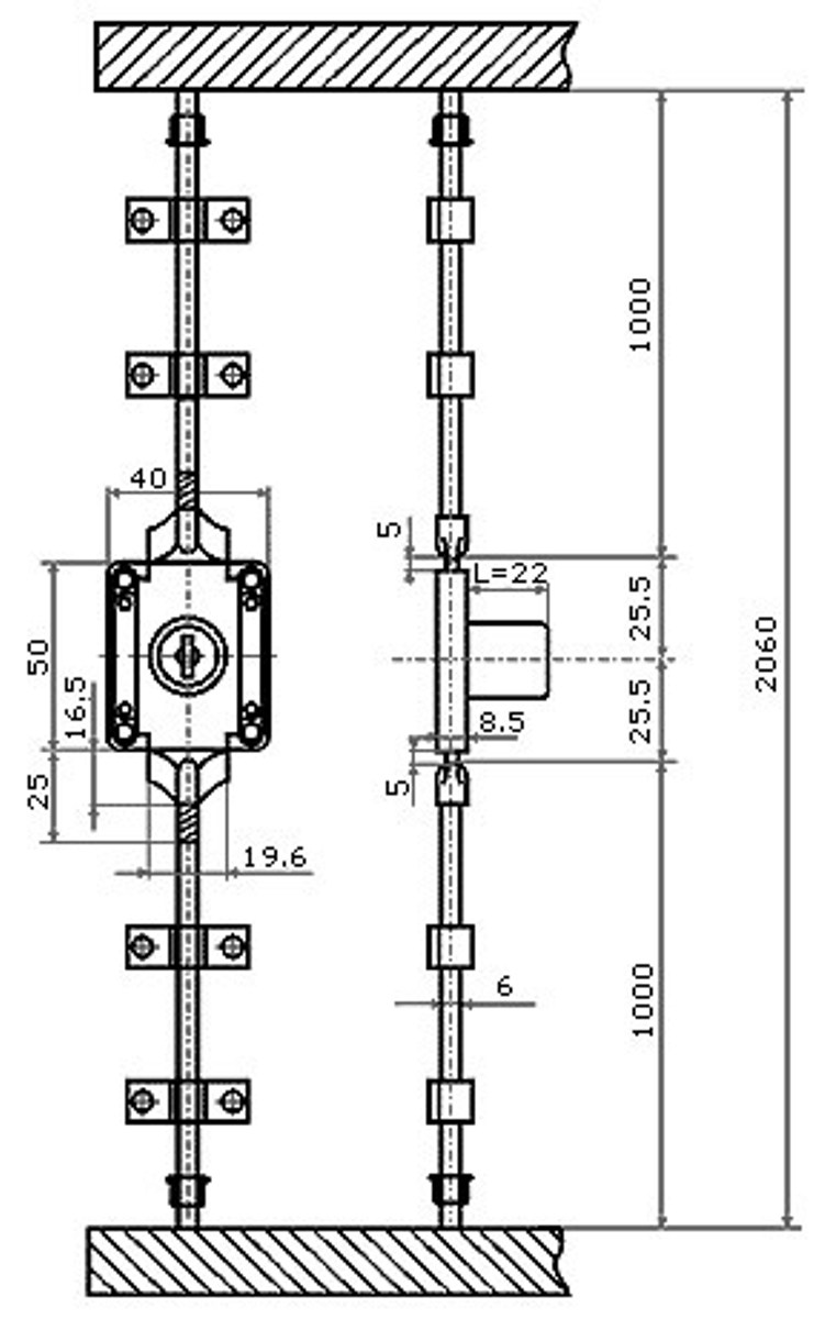 Zámek rozvorový AVES 168-22 Cr + 2 tyče délka 1m (pr. 6mm]