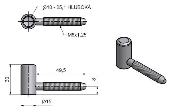 Vrchní díl závěsu ( pantu ) - do dveřního křídla. Zakování se provádí po dokončení povrchové úpravy dveřního křídla.