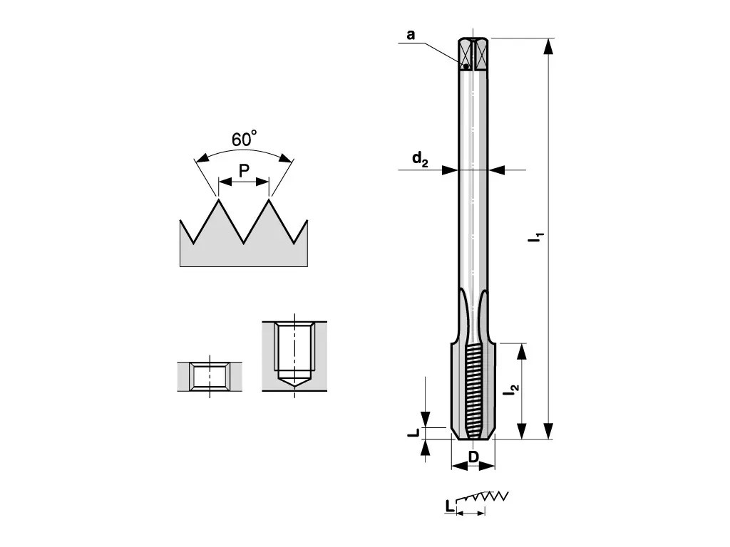 Závitník strojní M12x1,75 HSSE 2N přímá drážka PN8/1376(DIN376)Strojní závitníky pro metrický závit s přímou drážkou