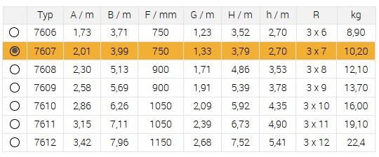 Žebřík trojdílný univerzální 7607 AL 399cm/HOBBY/3x7 příček Žebřík trojdílný univerzální 7607 AL 399cm/HOBBY/3x7 příček Kód: 3177607 P/N: 7607 Záruka: 24 Měsíc(ů) Výrobce: ALVE Měrná jednotka: ks Dostupnost: Skladem 3 Cena bez DPH: 2 827,44 Kč Cena s DPH: 3 421,20 Kč Rozpis cen Recyklační poplatek: 0,00 Kč Autorský polatek: 0,00 Kč Množství ks Do košíku Popis Podrobnosti Trojdílný univerzální žebřík EurostylSPECIFIKACEPočet příček:3 x 7Délka:2,01 mCelková délka:3,99Šířka:454 mmŠířka druhé části:397 mmŠířka třetí části:340Hmotnost:10,20 kg Základní parametry Parametr Hodnota Materiál Hliník Provedení Třídílné