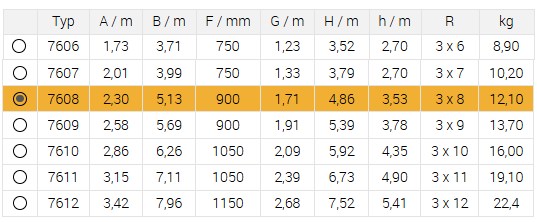 Žebřík trojdílný univerzální 7608 AL 513cm/HOBBY/3x8 příček Žebřík trojdílný univerzální 7608 AL 513cm/HOBBY/3x8 příček Kód: 3177608 P/N: 7608 Záruka: 24 Měsíc(ů) Výrobce: ALVE Měrná jednotka: ks Dostupnost: Skladem 4 Cena bez DPH: 3 369,96 Kč Cena s DPH: 4 077,65 Kč Rozpis cen Recyklační poplatek: 0,00 Kč Autorský polatek: 0,00 Kč Množství ks Do košíku Popis Podrobnosti Trojdílný univerzální žebřík Eurostyl SPECIFIKACEPočet příček: 3 x 8Délka: 2,30 mCelková délka: 5,13Šířka: 454 mmŠířka druhé části: 397 mmŠířka třetí části: 340Hmotnost: 12,10 kg Základní parametry Parametr Hodnota Materiál Hliník Provedení Třídílné