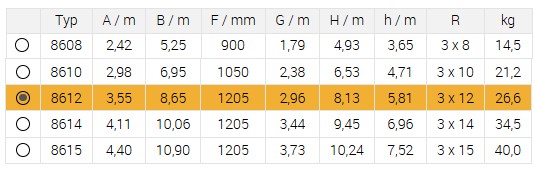 Žebřík trojdílný univerzální 8612 AL 865cm/PROFI/3x12 příček Žebřík trojdílný univerzální 8612 AL 865cm/PROFI/3x12 příček Kód: 3178612 P/N: 8612 Záruka: 24 Měsíc(ů) Výrobce: ALVE Měrná jednotka: ks Dostupnost: Skladem 1 Cena bez DPH: 8 605,08 Kč Cena s DPH: 10 412,15 Kč Rozpis cen Recyklační poplatek: 0,00 Kč Autorský polatek: 0,00 Kč Množství ks Do košíku Popis Podrobnosti Trojdílný univerzální žebřík ForteSPECIFIKACEPočet příček:3 x 12Délka: 3,55 mCelková délka:8,65 mŠířka:484 mmŠířka druhé části:412 mmŠířka třetí části:340 mmHmotnost: 26,60 kg Základní parametry Parametr Hodnota Materiál Hliník Provedení Třídílné